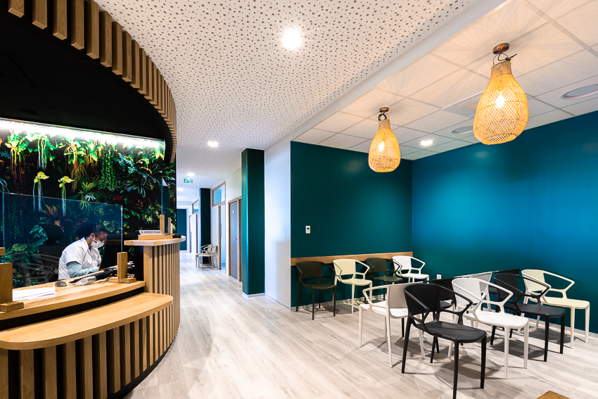De plus, les circulations ont été pensées pour permettre un accès complet aux personnes à mobilité réduite. Les éléments de signalétique et les aménagements sur mesure orientent efficacement les patients et simplifient leur expérience.
