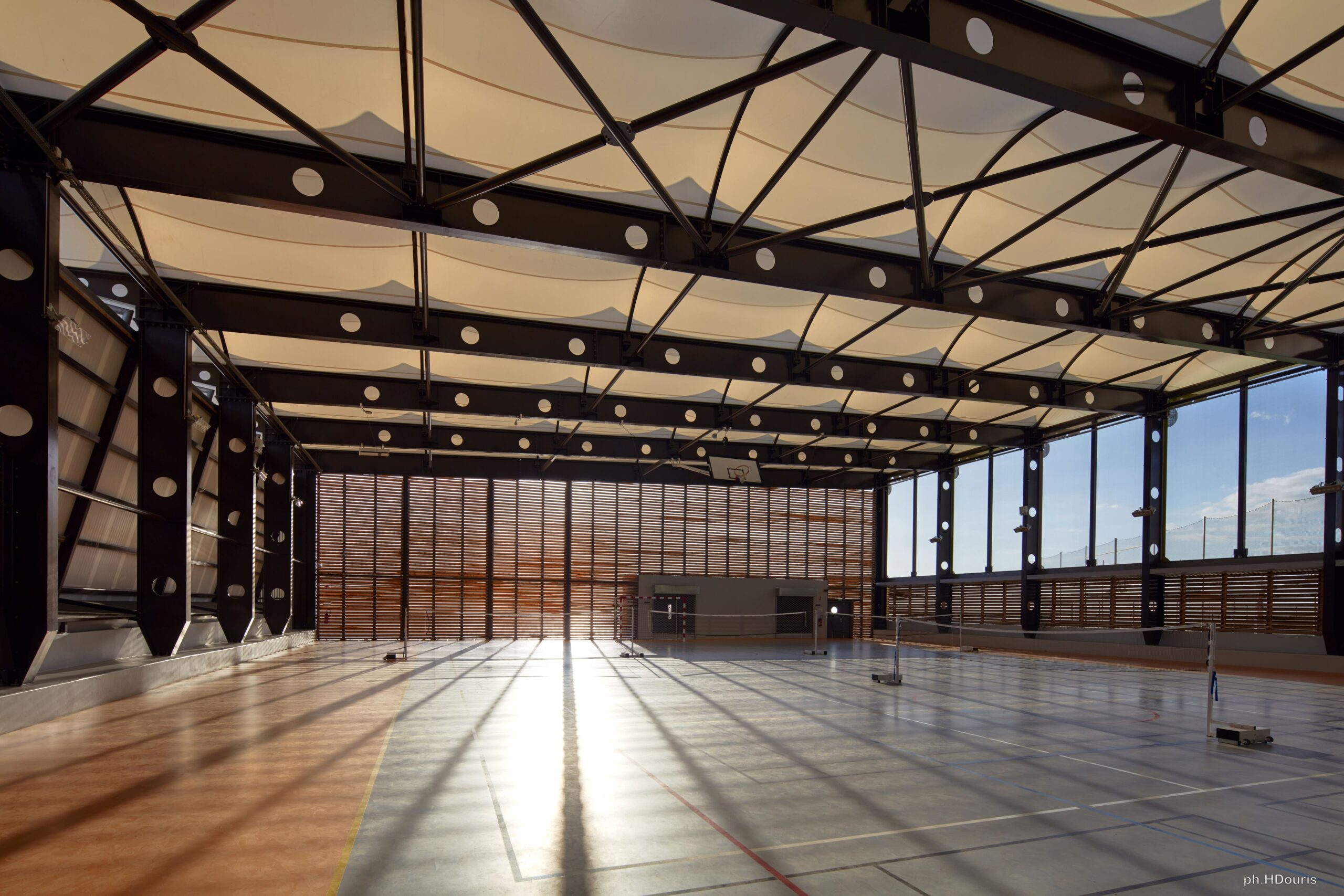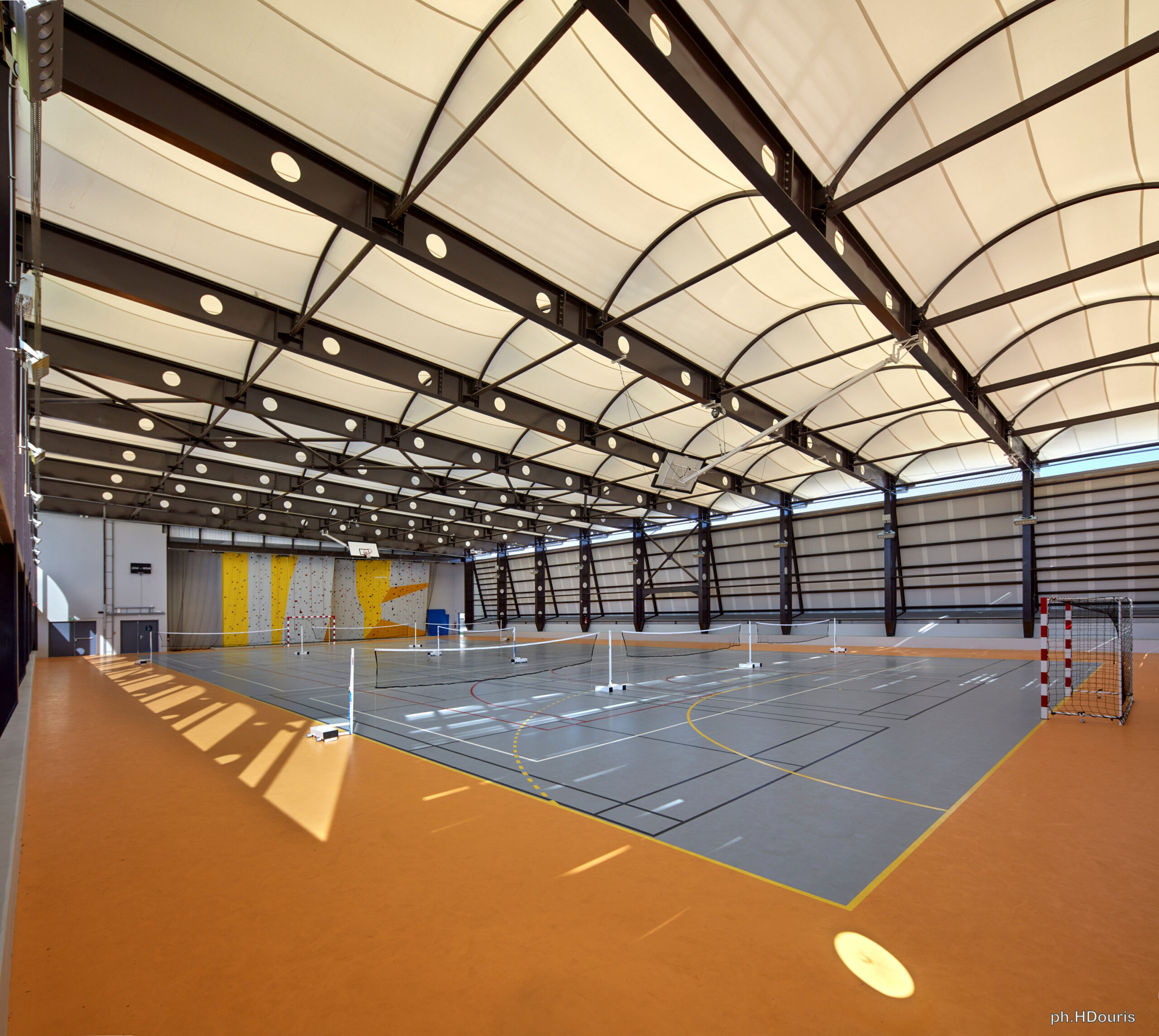 Le projet associe plusieurs espaces complémentaires. Il comprend d’abord un plateau couvert de grande portée de 48 x 28 mètres. Cet espace central permet d’accueillir de nombreuses activités sportives collectives. Il offre aussi des conditions de pratique confortables, sécurisées et adaptées aux usages scolaires.