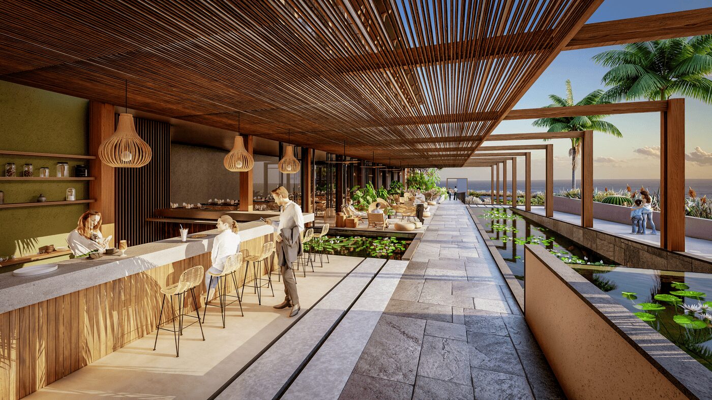 Situé sur un site emblématique, cet hôtel 4 étoiles et résidence de tourisme bénéficie d’un cadre exceptionnel qui impose une architecture forte et facilement identifiable. Grâce à sa localisation et à sa richesse paysagère, la parcelle accueille un projet qui marque durablement son environnement tout en s’y intégrant harmonieusement. Un soin particulier est apporté au parcours des usagers, depuis leur arrivée jusqu’à leur séjour :