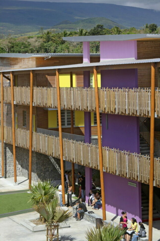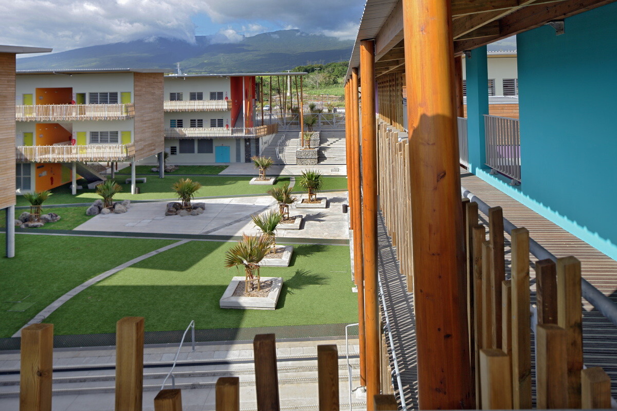 Véritable lycée-jardin, il s’insère dans le tissu du village et privilégie une architecture durable, sobre et low-tech, s’appuyant sur des solutions simples, éprouvées et efficaces pour offrir confort, pérennité et respect de l’environnement.