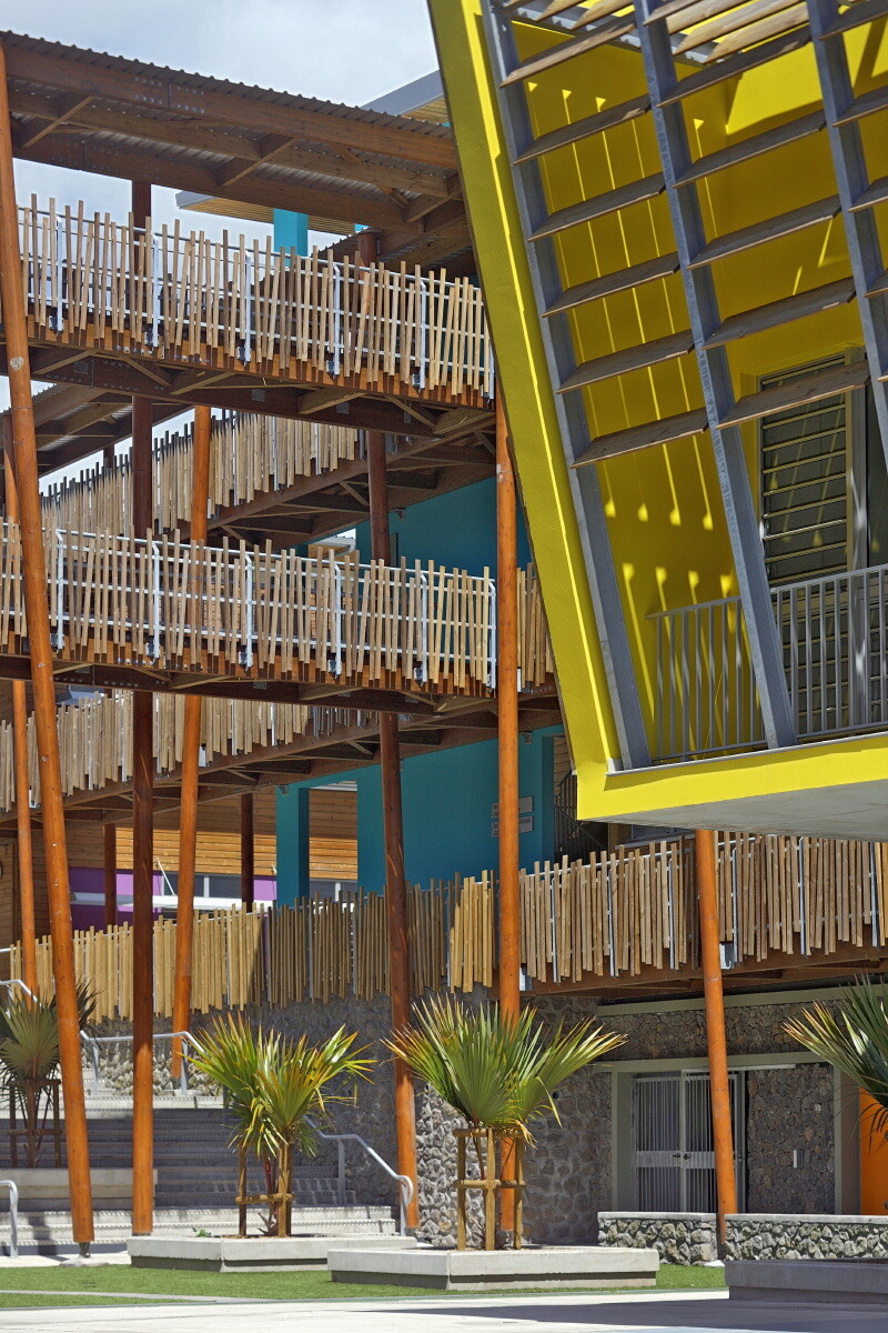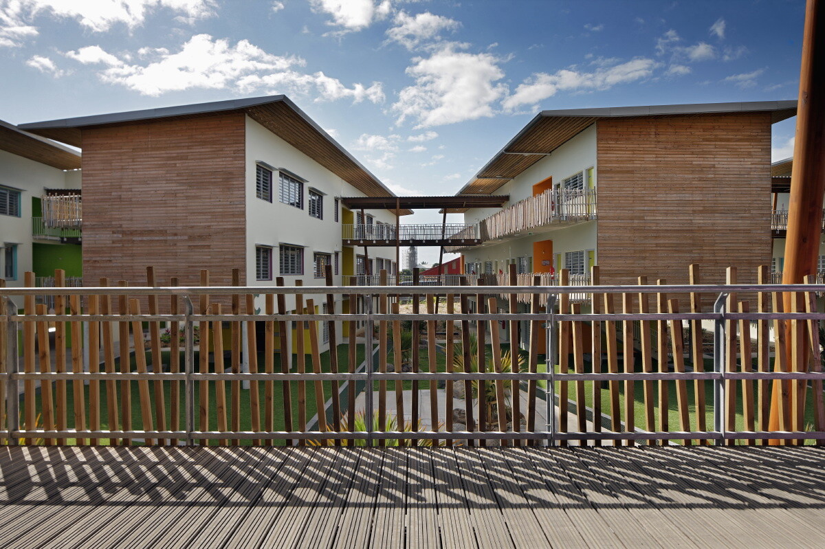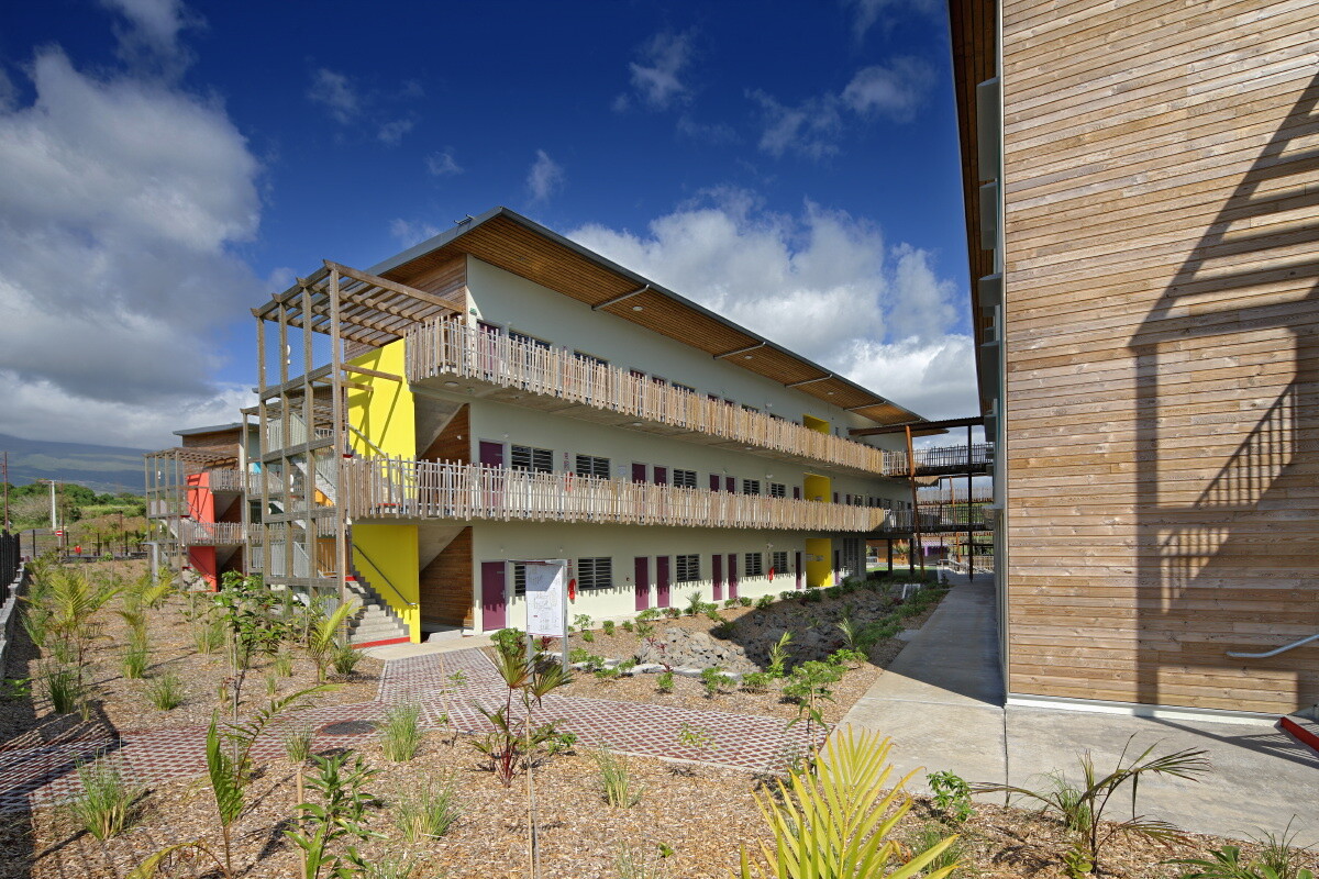 Le projet concerne un lycée polyvalent d’enseignement général et professionnel pour 1 000 élèves, intégrant un internat, des équipements sportifs et des annexes fonctionnelles accompagnant les enseignements.L’internat contribue à renforcer la vie interne de l’établissement, tandis que les formations professionnelles (social et médico-social) soulignent la vocation d’un lycée ouvert sur son environnement, en dialogue avec le territoire habité.Les équipements sportifs sont pensés comme un espace partagé avec les habitants du quartier et de Sainte-Anne, affirmant le rôle du lycée comme vecteur de lien social.Le projet adopte une orientation bioclimatique affirmée, non comme un simple ajout technique mais comme une démarche fondatrice, révélant les qualités du site et les conditions du territoire.