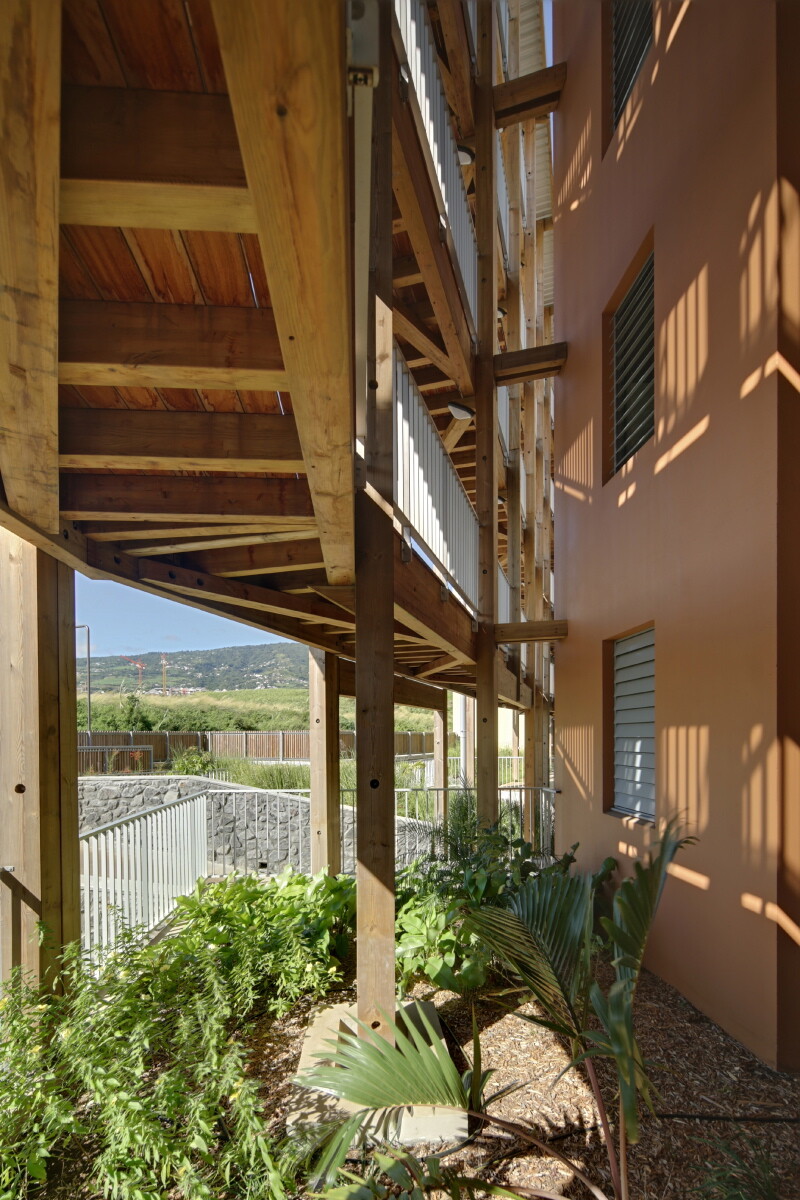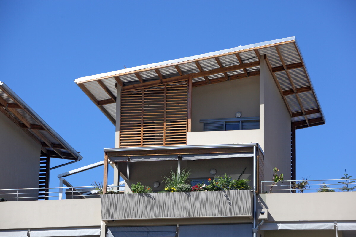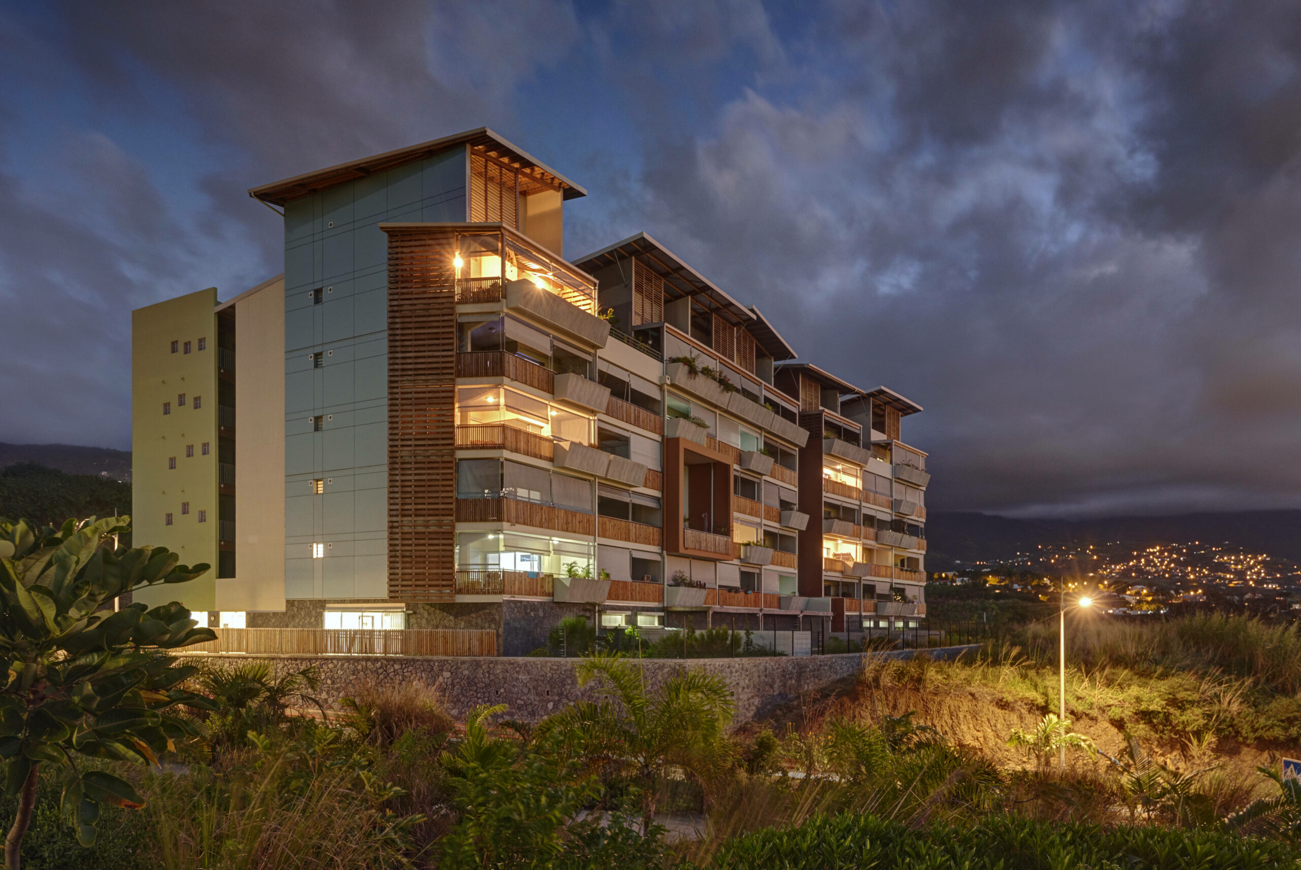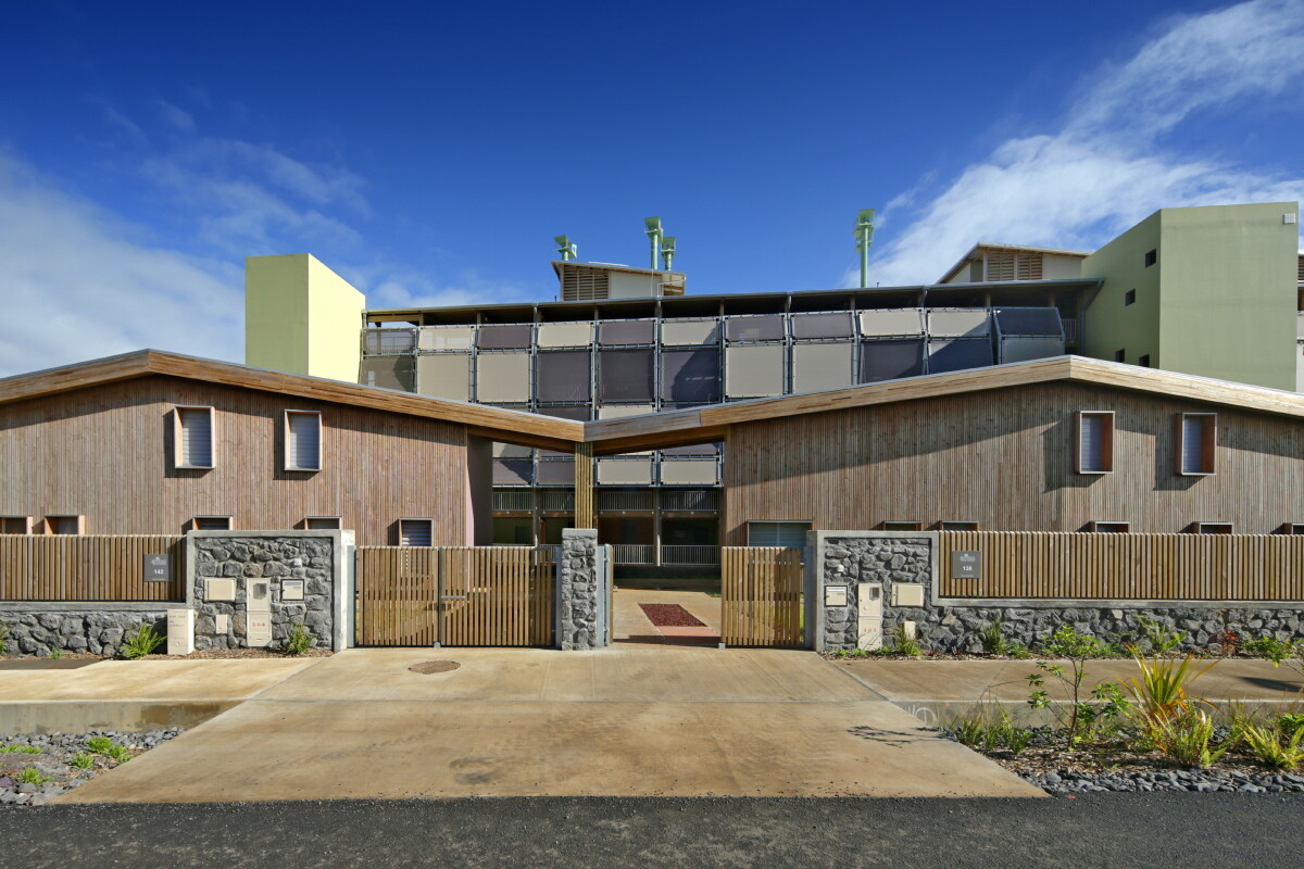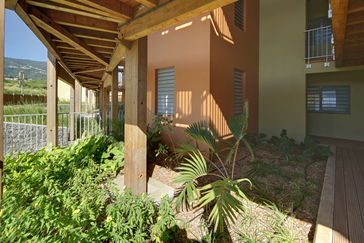 La résidence Les Portes de Beauséjour s’appuie pleinement sur les principes de l’architecture climatique. En effet, le climat de mi-pente, la pluviométrie importante et les alizés ont guidé la conception. De plus, la topographie et l’ensoleillement ont orienté les choix architecturaux. Le projet se distingue par ses larges débords de toiture, ses filtres solaires et éoliens, ainsi que par ses protections efficaces contre le soleil et la pluie.