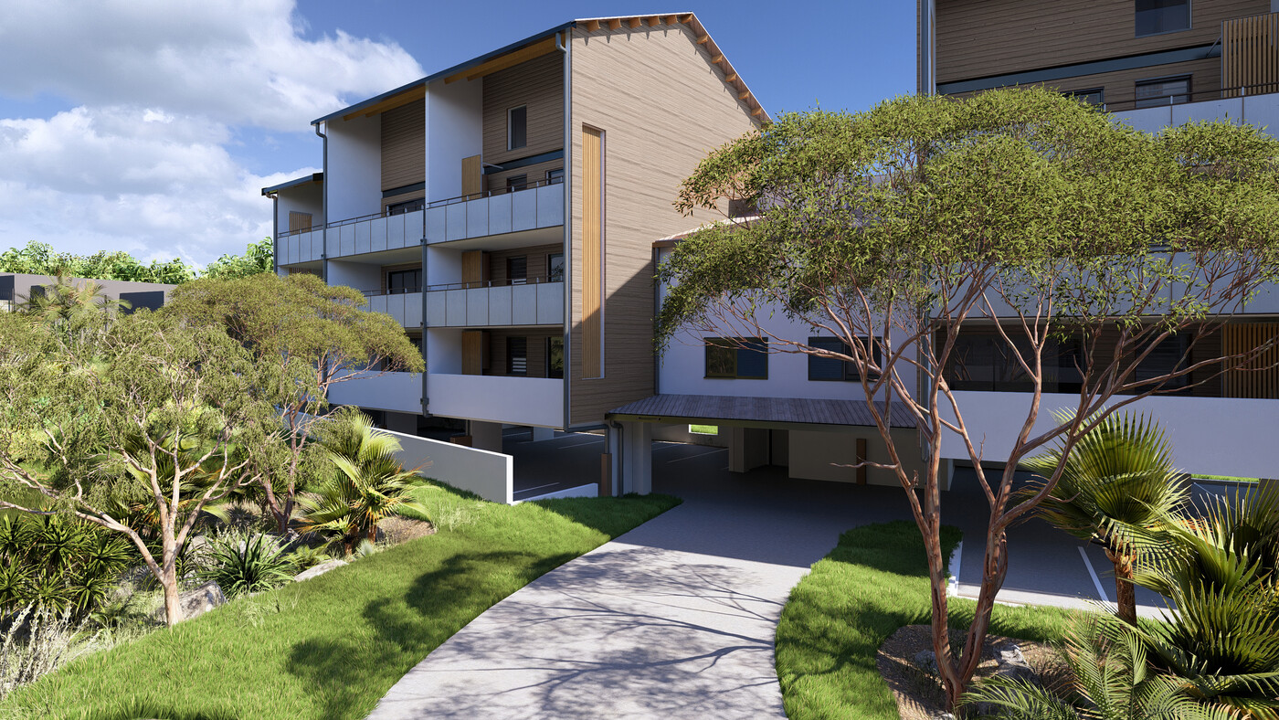 De plus, la pente naturelle du terrain a permis d’intégrer les parkings en sous-sol tout en surélevant le premier niveau de logements. Cette disposition offre des vues dégagées sur la rue et sur le jardin intérieur de l’îlot. Par ailleurs, elle favorise des circulations fluides et des espaces extérieurs protégés, encourageant la convivialité ainsi que la vie collective.