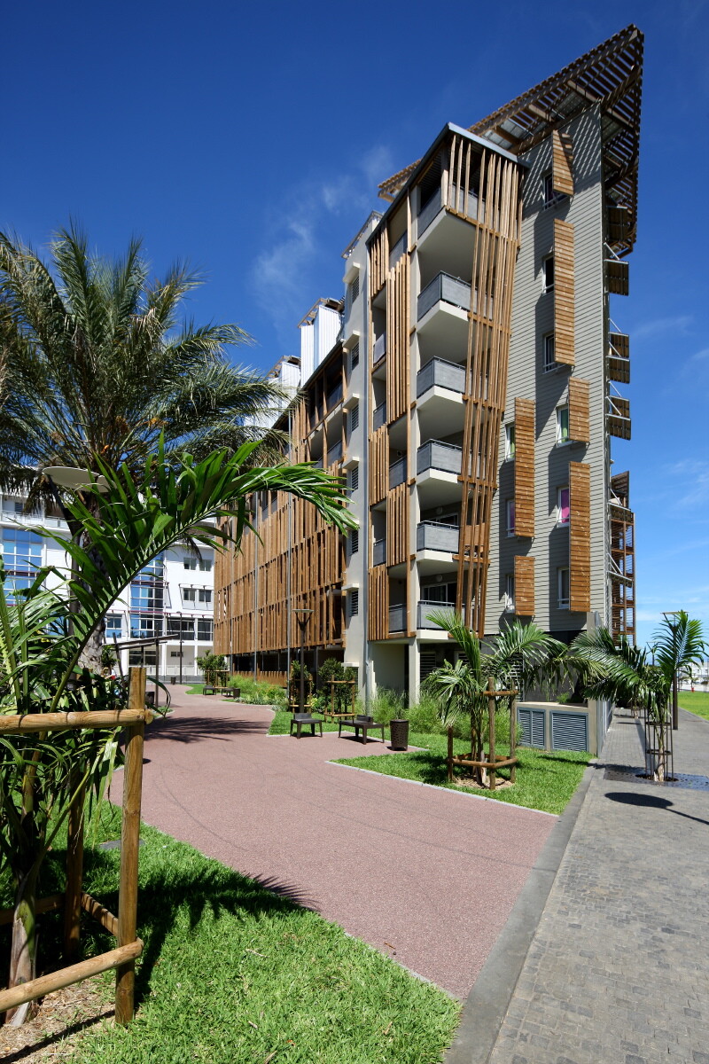 L’îlot Malacca se compose de trois corps de bâtiments organisés selon les mêmes principes. Par ailleurs, il conserve les alignements et la percée visuelle et végétale vers la rue de Montpellier. Les accès sont regroupés côté rue, avec une poste traversante et des entrées distinctes pour le commerce et la CGSS. Les logements traversants assurent un confort thermique optimal. Enfin, l’îlot Malacca accorde une place importante au paysage et au climat. Une coulée verte, une faille verticale et une fenêtre urbaine abritant un jardin suspendu favorisent le lien social et limitent les effets de surchauffe urbaine. Ce projet a reçu le Prix d’Architecture de La Réunion en 2014